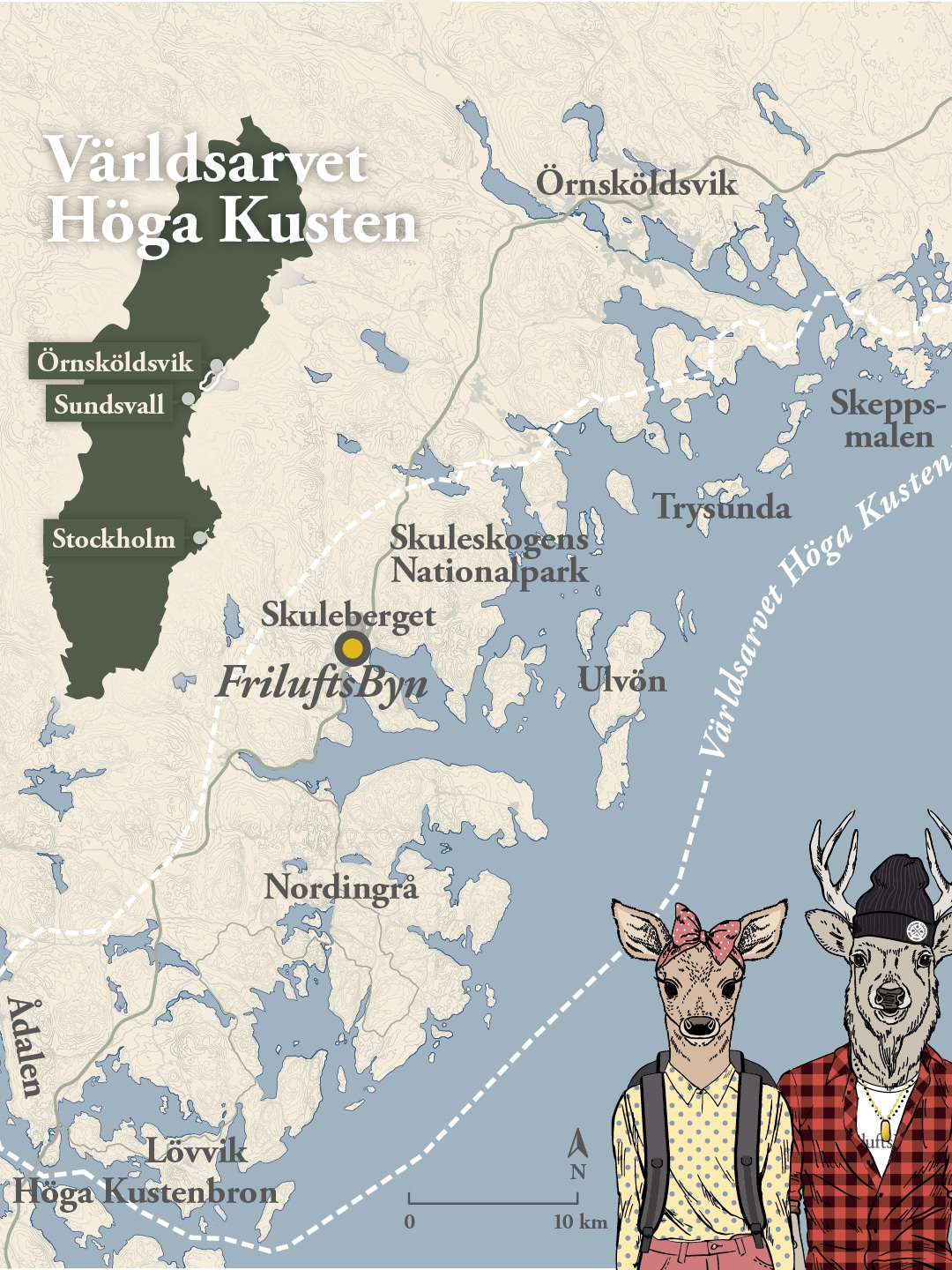 FriluftsByn ligger mitt i Världsarvet Höga Kusten, intill de främsta sevärdheterna och besöksmålen.